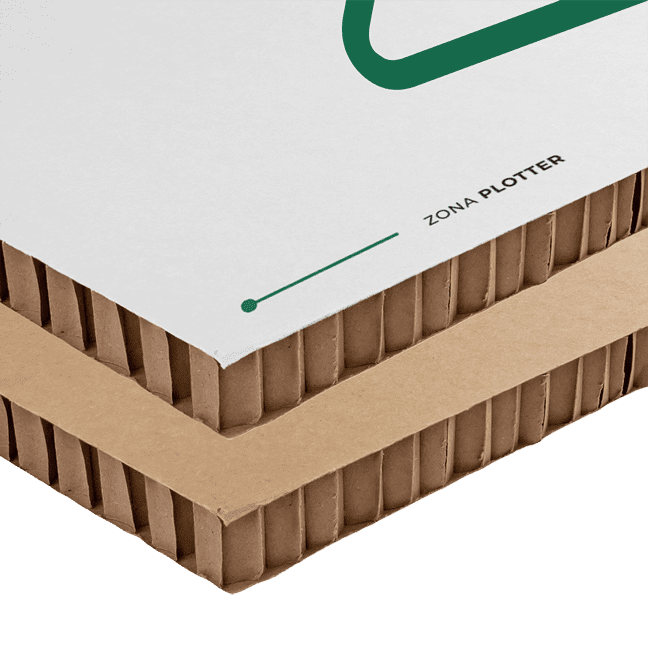 El cartón nido de abeja de 16mm ofrece un soporte rígido de impresión digital formado por un núcleo con estructuras hexagonales que recuerdan a un panal de abeja, y dos capas externas.