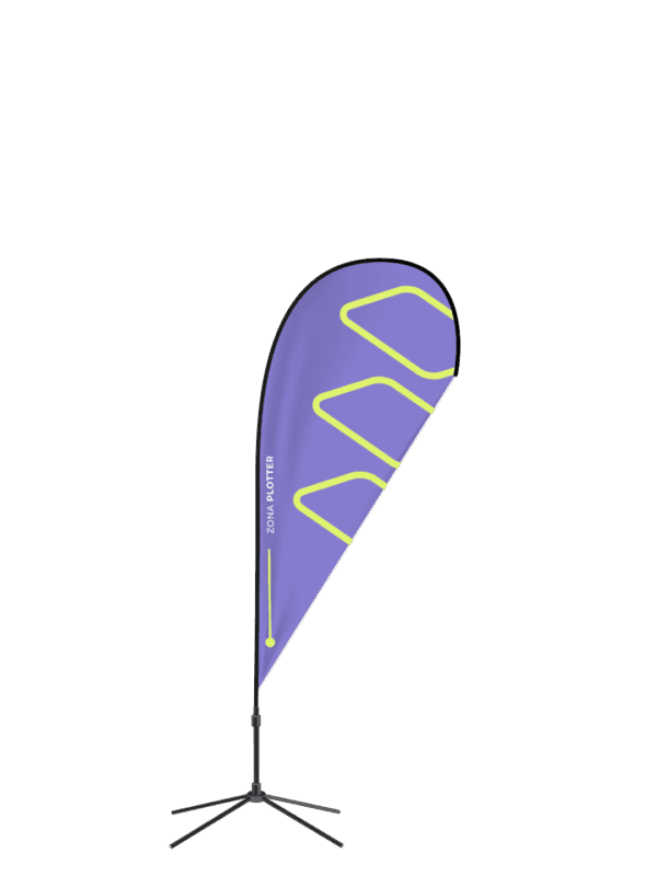 El Fly Banner Lágrima S es un expositor para banderas de exterior de 245 cm de altura con sistema de exposición a doble cara (se imprime a una cara, pero se visualiza en ambas, una del derecho y en la otra cara del revés), ideal para eventos outdoor.