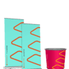 Completo pack ideado para ferias y eventos compuesto por dos rollups (85 x 200 cm) y un mostrador portátil de diseño curvo. El montaje de estos expositores tarda solamente un par de minutos y no es necesario ningún tipo de herramienta.
