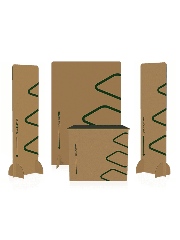 Recurre a él en aquellos eventos promocionales en los que busques trasladar una imagen ecológica y más sostenible.Incluye:2 carteles de pie (65 x 200 cm). Fabricados en cartón nido de abeja Kraft marrón o Kraft estucado blanco. Van impresos a una cara.+ 1 cartel de pie (150 x 200 cm). Fabricado también en cartón ondulado de 9 mm Kraft marrón o Kraft estucado blanco. Incluye 2 peanas de 24,5 x 40 cm. Va impresos a una cara.+ 1 mostrador de cartón (100 cm x 40 x 100 cm). Fabricado en cartón nido de abeja de 16 mm Kraft marrón o Kraft estucado blanco. Características del archivo:PDF editable JPG alta resolución o TIFF sin capas entre 125 y 300 dpi a tamaño real, con sangre de entre 1 y 2 cm. Recomendamos no incluir elementos como logos y textos a 5 cm de los bordes.*Las características del producto pueden variar sensiblemente respecto a la imagen en función de la disponibilidad de stocks.