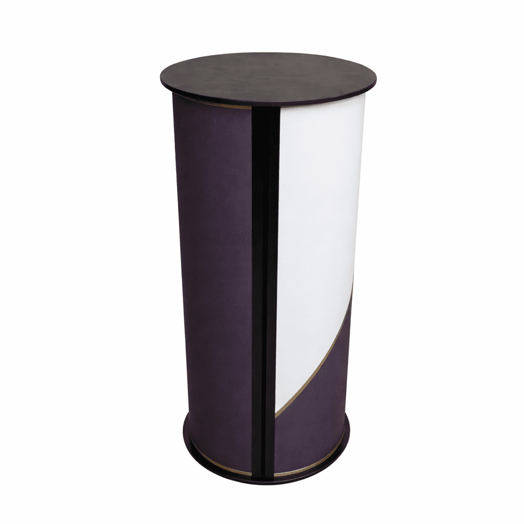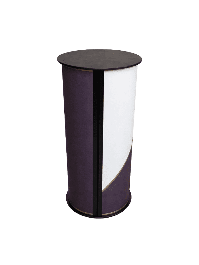 Te presentamos un stand desmontable cilíndrico, de sólo 45 cm de diámetro, que se adapta perfectamente a pequeños espacios. Puedes utilizarlo como punto de información o mostrador de recepción.