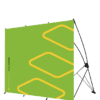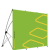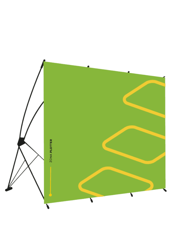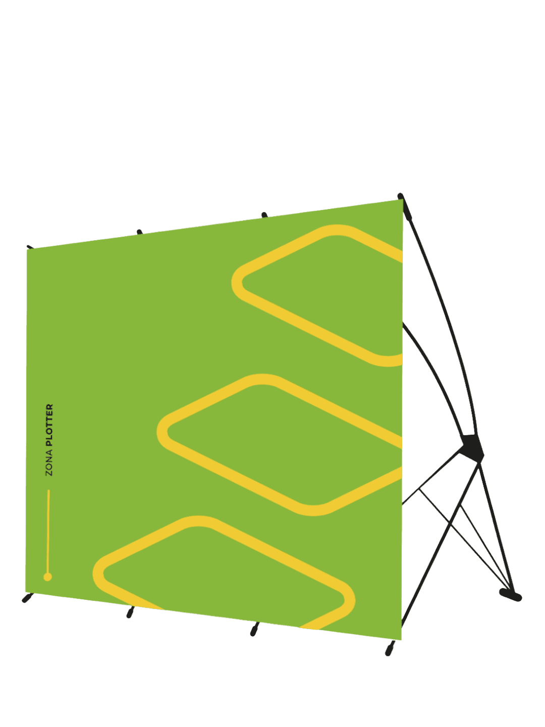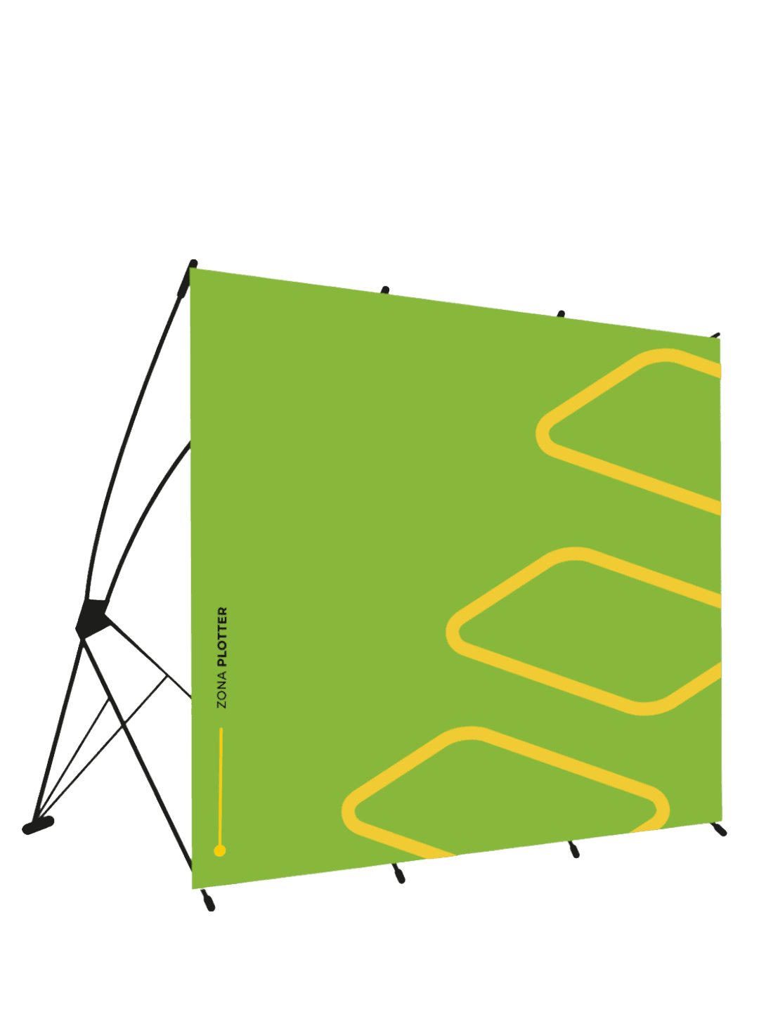 Diseño desplegable con base de trípode. Este photocall se convierte en una opción económica para disponer de un material promocional impreso de fácil montaje y desmontaje.
