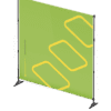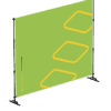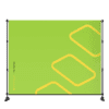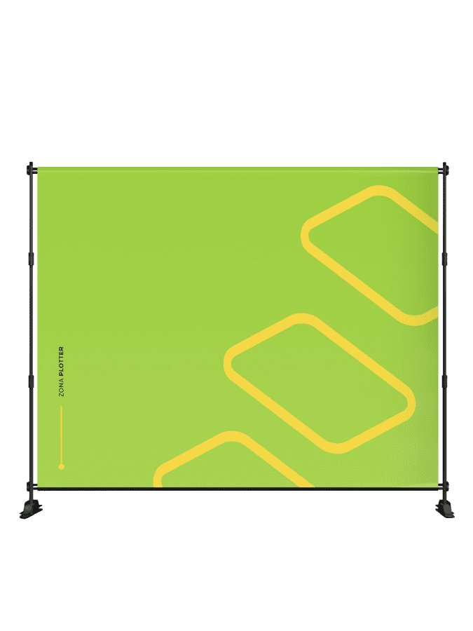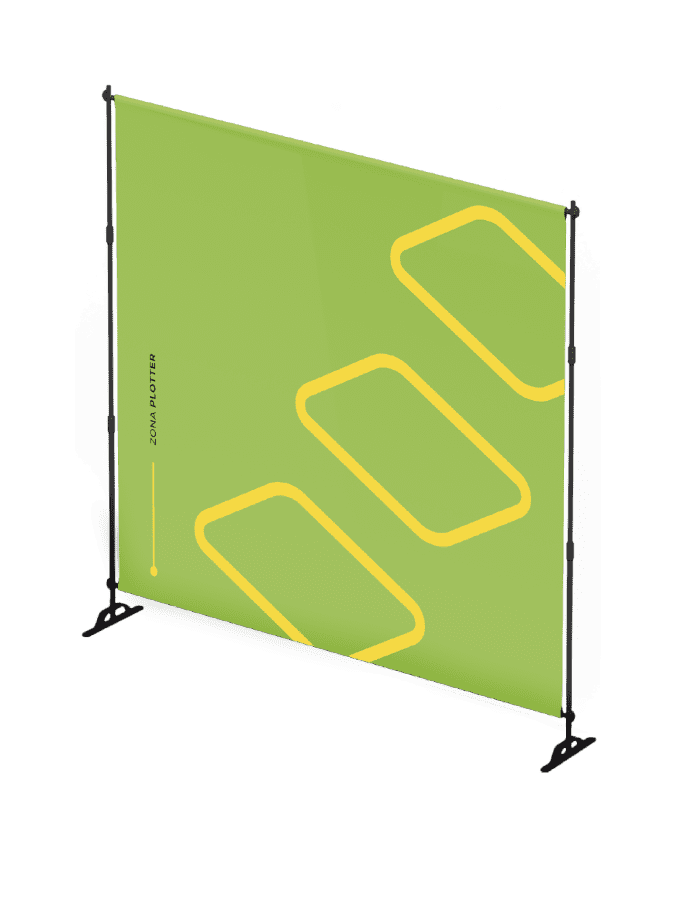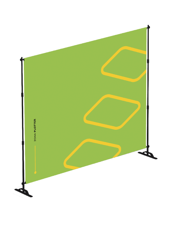 Un expositor económico que se compone de un soporte metálico y de PVC desplegable con gráfica impresa en textil a todo color con velcros en el perímetro, para poder sujetarla fácil y rápidamente a la estructura.