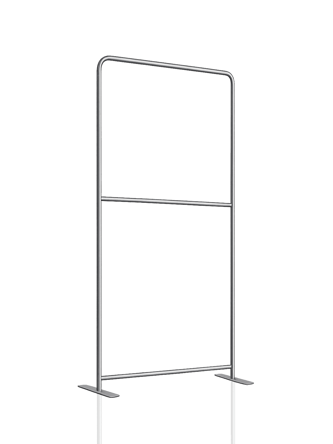 Display publicitario doble cara desmontable, ideal para ferias y eventos. Gráfica impresa a doble cara, a todo color en tejido opaco antiarrugas y elástico, con un acabado profesional. Estructura de aluminio ligera y resistente, con montaje rápido sin herramientas.
